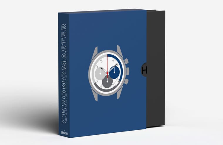 既然有线上独卖款的身份,真力时也为准表主准备了一份惊喜,Chronomaster Original直营电子商务限定款式採用特制表盒设计,表盒乍看好像一本厚厚的工具书,封面印有手表的素描图片。打开表盒,会发现内附三张明信片,以简约手法描绘手表的平面图,採用标志性的灰蓝色调,再次让人联想起当年A386手表的风采。