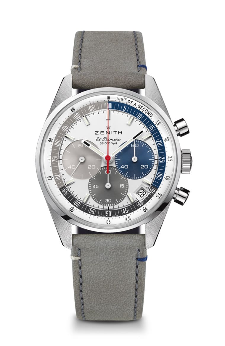 ZENITH真力时为喜爱经典款A386的表迷打造出一款Chronomaster Original手表,特别的是这款表只限在品牌直营电子商务通路独家贩售,手表身上重现了早期El Primero手表常见的灰蓝调三色面盘风格。