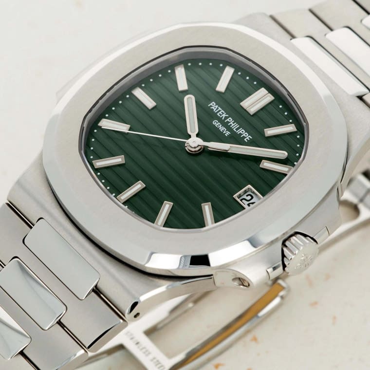 ▲改换成绿色面盘的5711/1A在市场上炙手可热的程度甚至超过蓝面,先前曾拍出将近49万美金的高价,这次登上Loupe线上拍卖预估价高标也有40万美金。Source:loupethis