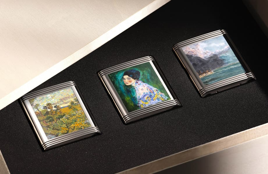 三位大艺术家代表了西洋美术史的重要阶段,如库尔贝的现实主义画派、梵谷代表的后印象画派,至于克林姆则表现出维也纳分离画派。而这次积家精挑细选三位大师的画作还有个共同点,那就是这三幅画作都曾隐匿于世数十年,甚至一度被认为已经亡佚,一直到近年才被重新发现并认定,所以积家希望透过三款表向世人介绍三幅画失而复得的感人过程。