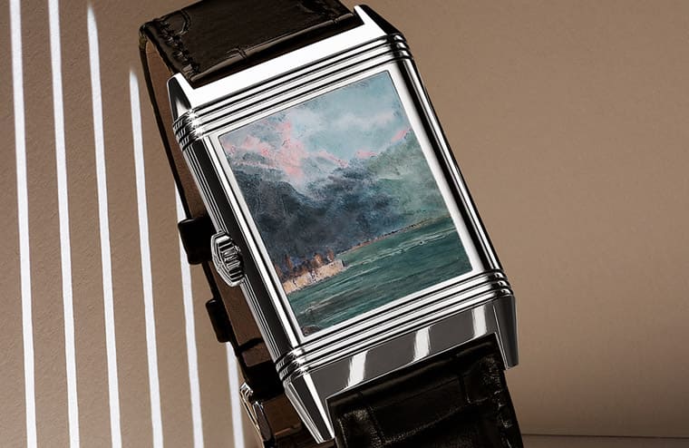 ▲Reverso限量表表背以微绘珐琅工艺再现现实主义画派大师库尔贝于1876年所创作的《莱芒湖景》。