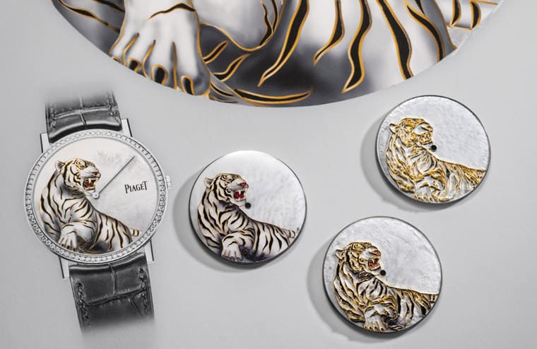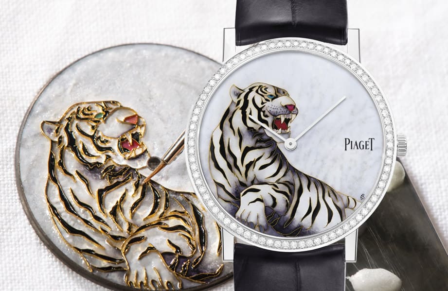 老虎是丛林之王,也象徵着权力、尊严和财富。因此当新年的生肖轮到老虎时,常常让人觉得充满希望,而伯爵为了展现老虎令人敬畏的特质,再度邀请到珐琅彩绘界的大腕——瑞士国宝级大师Anita Porchet操刀制作Altiplano系列虎年生肖手表的面盘图案。