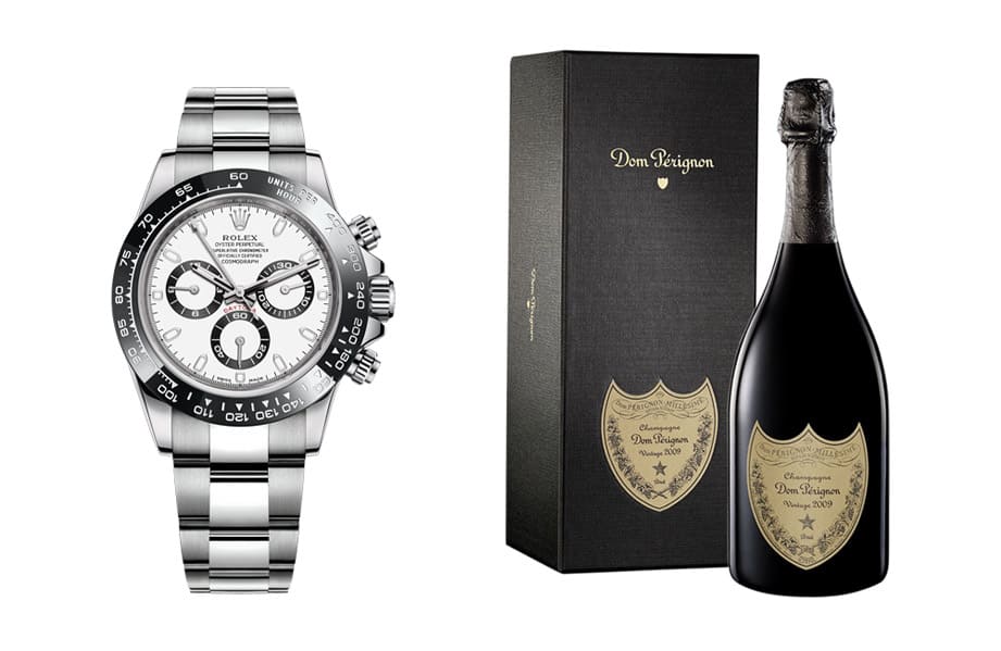 首先看到的是劳力士,原Po认为他们的江湖地位可以和香檳界的Dom Pérignon分庭抗礼,这个品牌有个很响亮的中文名称叫做「香檳王」,品牌由来自Hautvillers本篤会的修道院修士唐·皮耶尔·培里儂所创立,他是最先使用软木塞来保持葡萄酒新鲜度的人,他们家所有香檳酒都是年份葡萄酒,只有达到标准的葡萄才得以生产。同时他们也坚持选用产自法国香檳区葡萄,且每个流程都严格遵循传统。另外Dom Pérignon还保证至少7年的酝酿过程。目前香檳王隶属LVMH集团,常见许多五星级饭店和航空公司招待VIP客人之用。