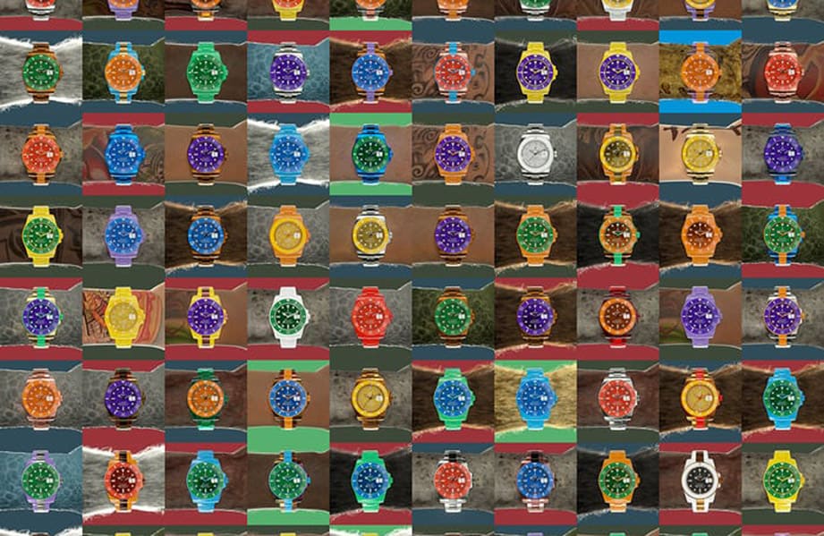 Hodinkee想了解GENERATIVE WATCHES产品的内涵,对此Jesus Calderon回应说他的创作形式像是一种由演算法所造就的虚拟手表系列,他在最初阶段花了一个月的时间在Google试算表上建立了一套自己的演算法系统,裡面包括各种各样的元素例如顏色、材质、外观甚至戴着手表的手腕等——手腕不限于人类,可以包括动物、机器人乃至外星人⋯⋯,至于手表材质也很多元,举凡金属、陶瓷、蓝宝石水晶等,在3D绘图的世界中,Jesus Calderon可以让想像力尽情发挥,因此他创作的虚拟手表型态也是千变万化,而且他的演算法也并非一成不变,他在过程中会适时进入去修改一些设定,藉此生产出更多的虚拟手表作品。