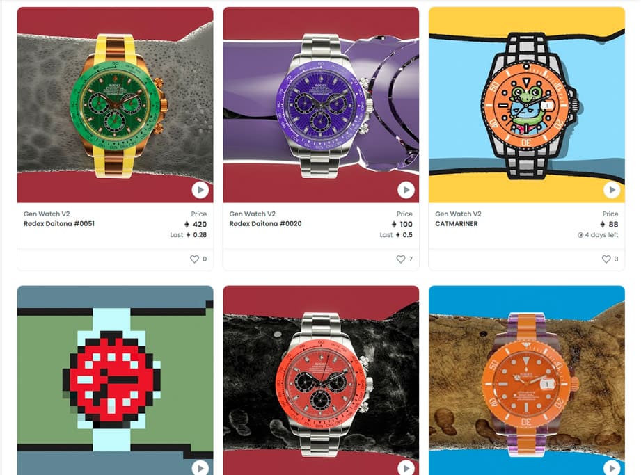 Hodinkee想了解现在一只虚拟手表的行情怎麼卖?Jesus Calderon表示GENERATIVE WATCHES生产的第一批手表价格以Ethereum (ETH) 来计算的话定价几乎都是0.1 ETH;当时1 ETH的价值约为3千美金,所以他们卖出的第一批手表单价约是3百美金。其中Daitona(翻玩的Daytona)由于数量较少,所以定价稍高一些,要0.2 ETH,GENERATIVE WATCHES在首批作品中共卖出了68只的Daitona,以卖出时的价格换算,当时1 ETH已经涨到3,500美金,等于一只Daitona大概值700美金。