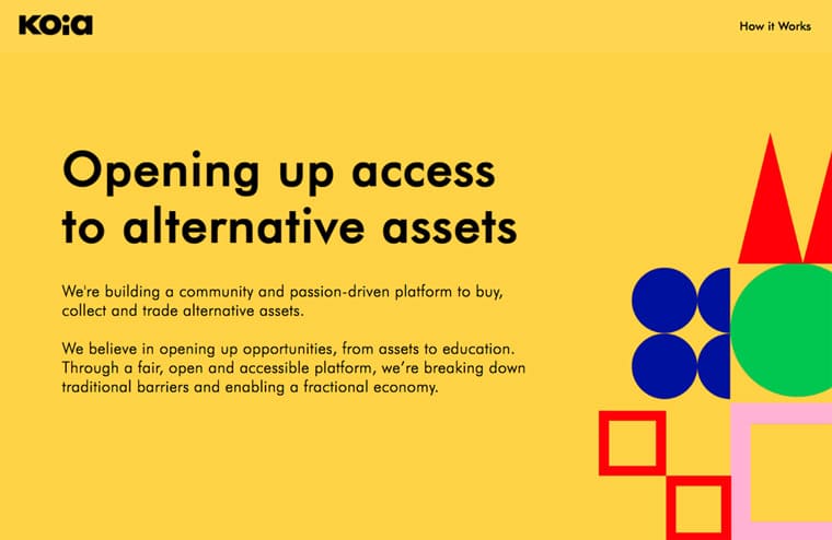 Koia对于公司创立的宗旨向外界表示:「我们的目标是藉由部分所有权的形式,让任何人都可以把高价位产品当成另类资产,并允许任何人投资于他们理解和真正热衷的商品。我们希望可以突破目前市场的籓篱,让任何人都可以拥有以前只有全球那仅仅1%最富有的人士才能拥有的标志性收藏,我们的投资标的不仅是高级手表,还包括美酒甚至是宝可梦卡牌等受到市场喜爱并有高价值的收藏品,希望可以把各式各样的另类资产的所有权细分化并提供给大众投资。」