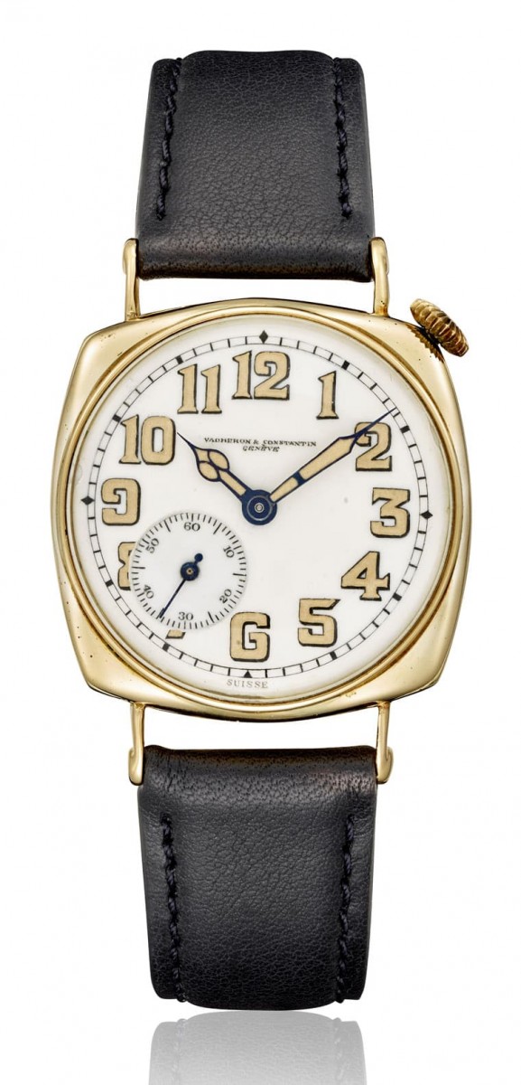 4. 18K黄金枕形手表,表冠位于「1点与2点钟」位置之间,Ref.12131(1919年)