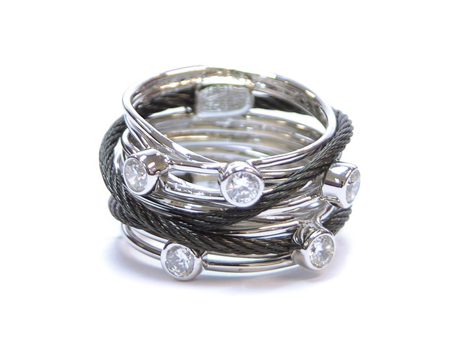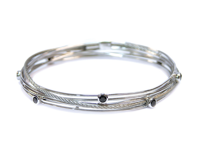 纯银与精钢钢索缀以黑色方晶鋯石,售价:NT$ 16,000。