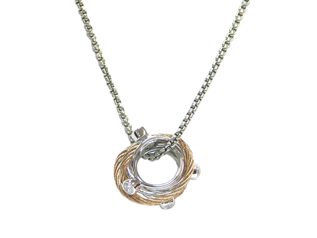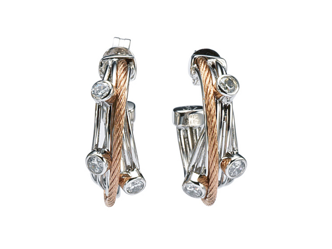 纯银与镀玫瑰金钢索缀以白色方晶鋯石,售价:NT$ 9,700。