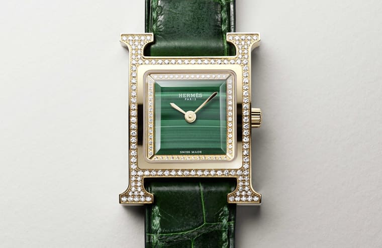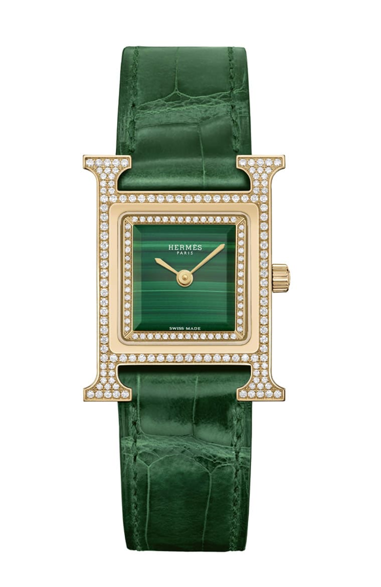 ▲爱马仕2022年首度发表以彩色半宝石为面盘的新作,赋予其经典的H形表壳耳目一新的风采。