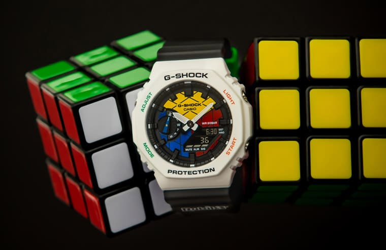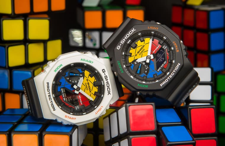 ▲G-SHOCK首度与Rubik’s Cube®公司合作,发表魔术方块主题的农家橡树系列新作。