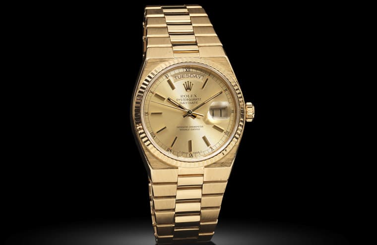 在这场拍卖会上,表迷们最有兴趣的是一款劳力士1979年生产的Oysterquartz Day-Date 19018,这款18K金的石英总统表曾在他1988年演出电影《骗徒糗事多》的Lawrence Jamieson一角时佩戴(实际上不只这部作品,据米高·肯恩爵士表示他曾在多部电影中都戴着这款劳力士手表)。不过可能是现在石英表并不像米高·肯恩爵士当年入手时新奇又抢手,所以拍卖会事前对这款表的估价也估得很保守,认为它的价值落在8,000~12,000英镑之间。