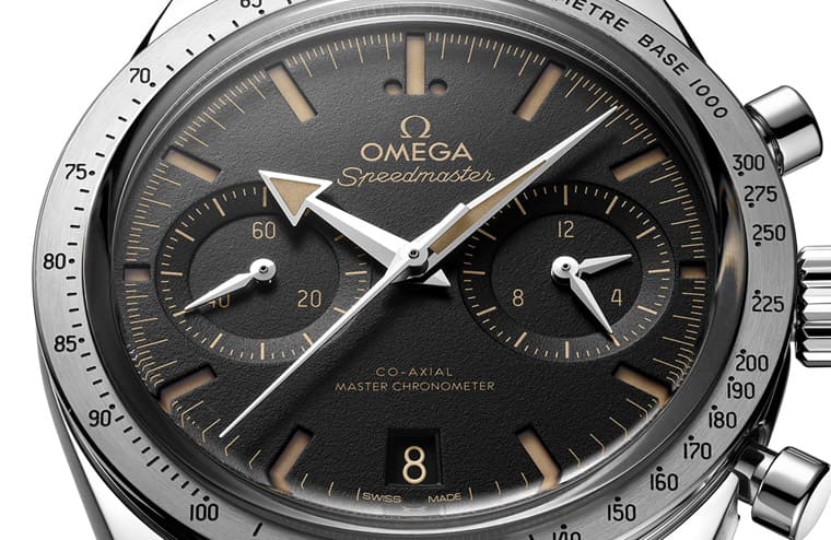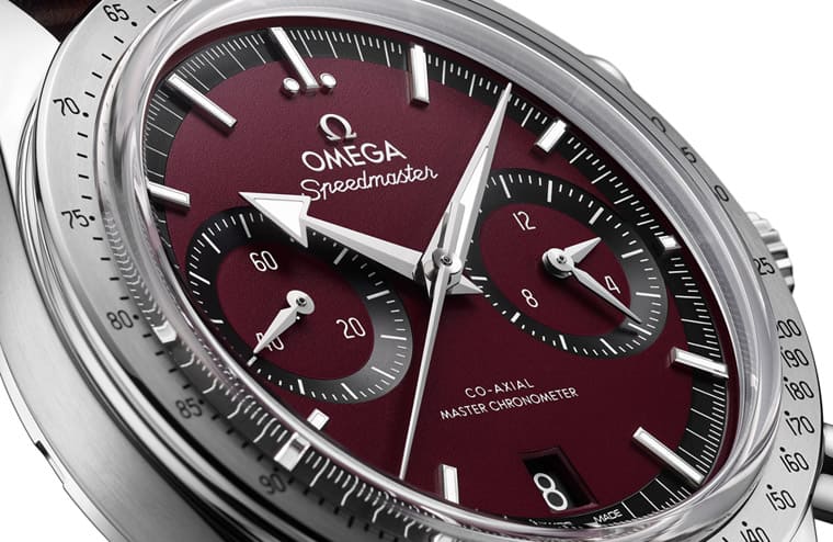 这次欧米茄替超霸'57手上链计时码表提供颇为丰富的面盘配色选择,除了有最经典的黑色面盘,还有蓝面、绿面与红面,其中黑面有一点不一样的是,它的面盘带有三明治结构,且Super-LumiNova夜光物料是较有复古况味的米黄色;至于其他三种彩色面盘的超霸'57手上链计时码表,它们的时标则是镀銠立体镶嵌时标,夜光物料也都是具有现代感的白色。