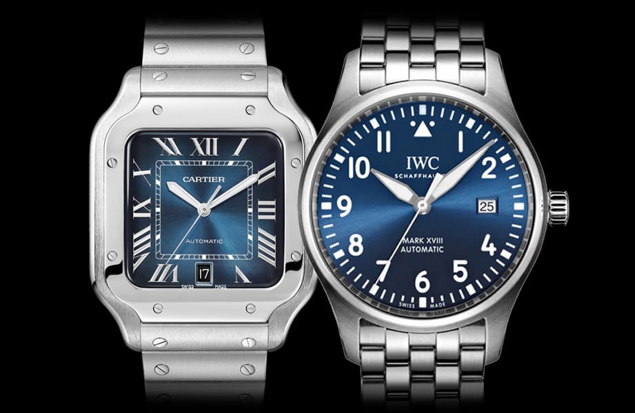 近年潜水表在市场上炙手可热到让人都快忽略运动表不是只有潜水表这一族而已,还有像是赛车表、飞行表等各种类型;提到飞行表,这也是爱表人士普遍都会有的一个梦想,如果可以拥有数款表,在购表清单上少不了也都会有一款飞行表的存在,毕竟不是每个人都有机会坐在飞机驾舱腾云驾雾,佩戴飞行表有一种可以帮助自己圆梦的投射心理,就算没有开飞机的技能和经验,至少戴款跟飞行员手上一样的表,相对来说轻易许多。表坛有许多品牌都有推出飞行表作品,其中CARTIER卡地亚和IWC万国表可以视为最具代表性的两个品牌;卡地亚拥有超过百年的飞行表制作历史,他们家的招牌飞行表系列从1904年诞生至今都还在持续服役中,至于IWC则是目前市场中少数以飞行表作为主力产品的品牌,因此若要挑选一款买了不会后悔的飞行表,通常先从卡地亚和IWC这两个品牌看起一定错不了。本次我们从两个品牌中各选出一款颇符合现代消费者喜好的飞行表作品,它们都是耐操实用的不锈钢表壳、搭配金属链带,面盘顏色也是和天空有直接联想的蓝色,这些元素刚好也和一些人气潜水表彼此呼应,不过由于潜水表和飞行表本身的专业用途就有差,所以表现在外自然也会有明显的独立个性。
