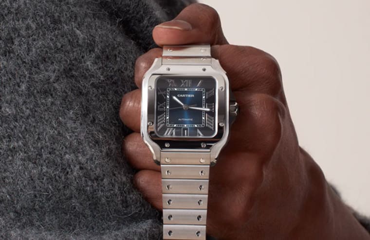 ▲Santos的表壳线条经过前几年改款调整后,如今从表耳延伸到链带显得更有一气呵成的流畅感。