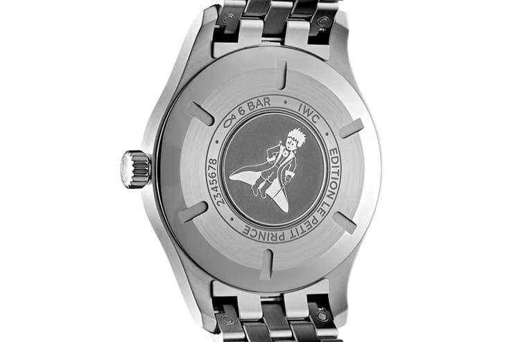 ▲传统飞行表以黑色面盘为主,不过小王子特别版统一以蓝色面盘示人,搭配底盖上的小王子图案,散发特别版专属的个性。