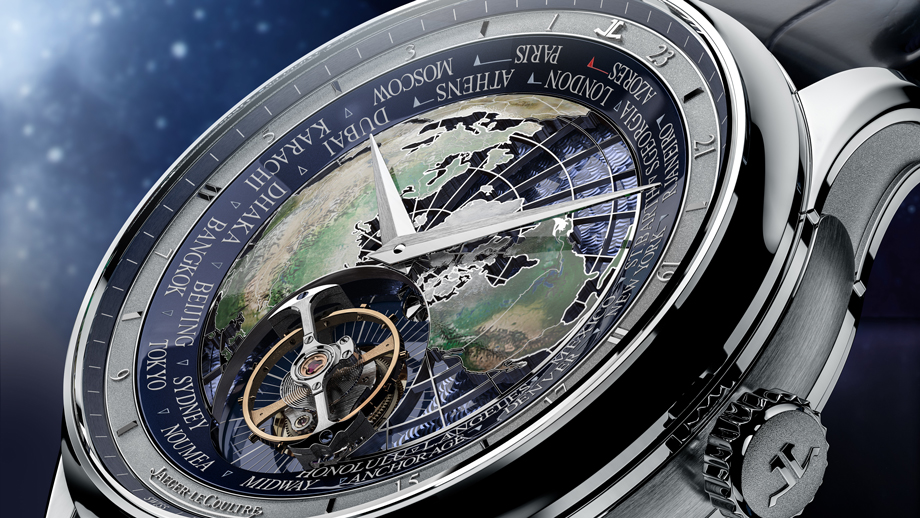 积家设计的948型机械机芯,首次结合了世界时间复杂功能与飞行陀飞轮。此外,世界时间陀飞轮每24小时在表盘上旋转一周,而24小时即一个平太阳日。这款自动上链机械机芯完全由积家表厂设计、研发和制作,彰显积家精湛卓越的工艺。腕表的世界时间复杂功能採用迷人的全新美学设计,体现大工坊别具匠心的艺术创意,并巧妙地结合装饰手工技艺与卓越的技术。