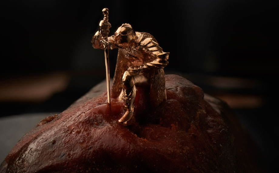 ▲以玫瑰金铸造并独立微雕出的骑士时标仅高6毫米。