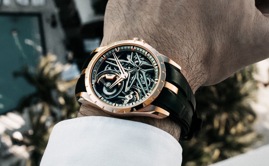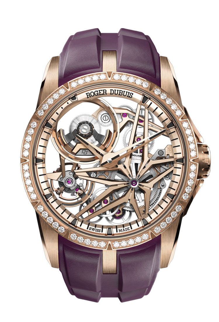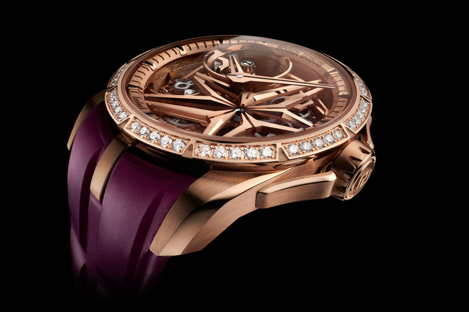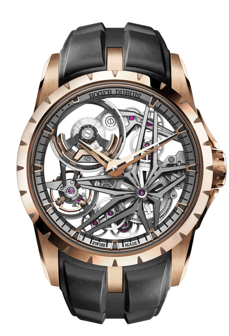 全新Excalibur Monobalancier王者系列单摆轮腕表标志着此系列的最新进化。极富远见的工程师遇上技艺精湛的制表师,透过机械与美学的创新,打造出充满现代风格的精致杰作。经过一系列机械改良,全新问世的RD720SQ自动上链机芯展现极致性能,动力储存增加至72小时。以玫瑰金与钨精制而成的镂空微型自动盘经改良降低震动,并蚀刻有Roger Dubuis缩写标志,整体设计更具现代感。