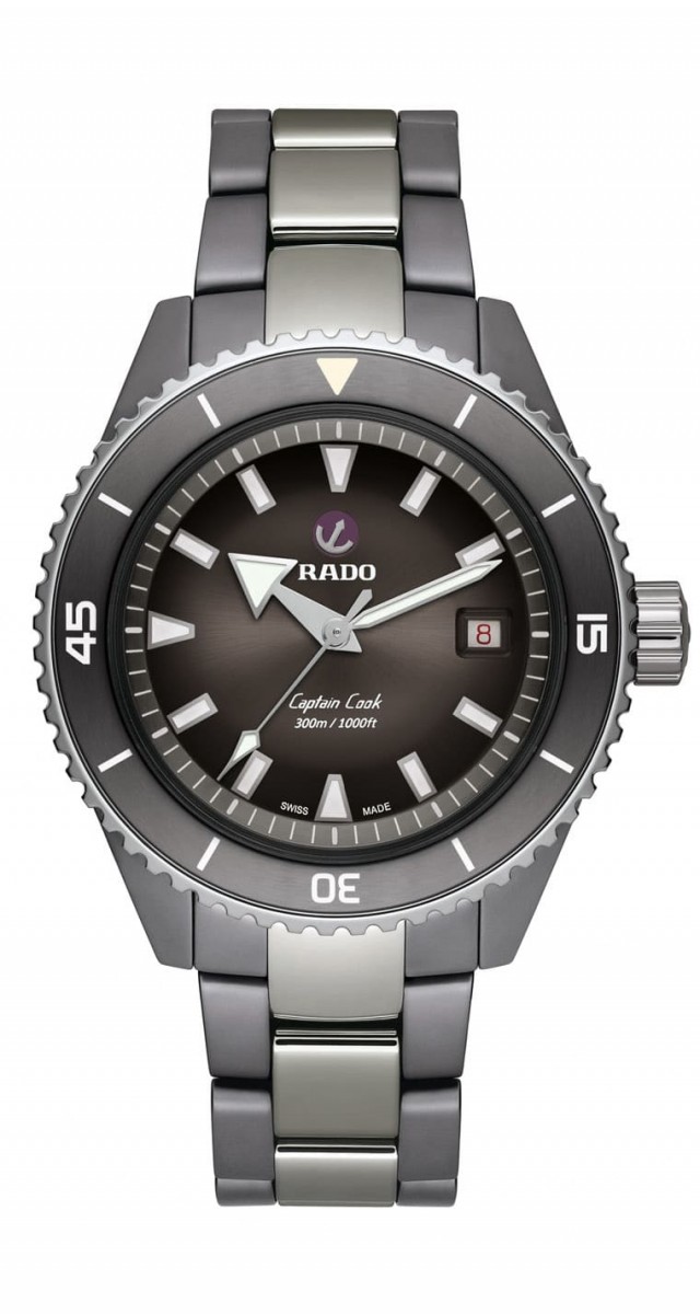 新款库克船长高科技陶瓷潜水表是以RADO 1962年制作的潜水表为灵感,并以库克船长系列为基础,设计上呈现3点钟位置的红色数字日期视窗、具有Super-LumiNova夜光涂层处理的时、分、秒针,表背也刻有两只海马等经典元素。手表的高科技陶瓷涵盖表壳与表圈,它们均经过硬化处理与拋光修饰,全陶瓷壳的好处在于防刮耐磨、低致敏性等等,日常佩戴充满高实用性。