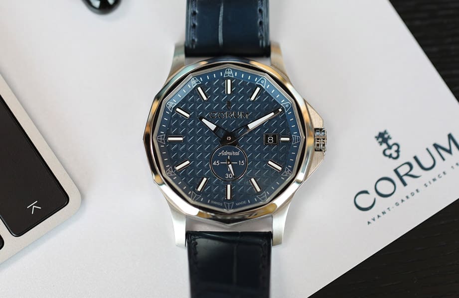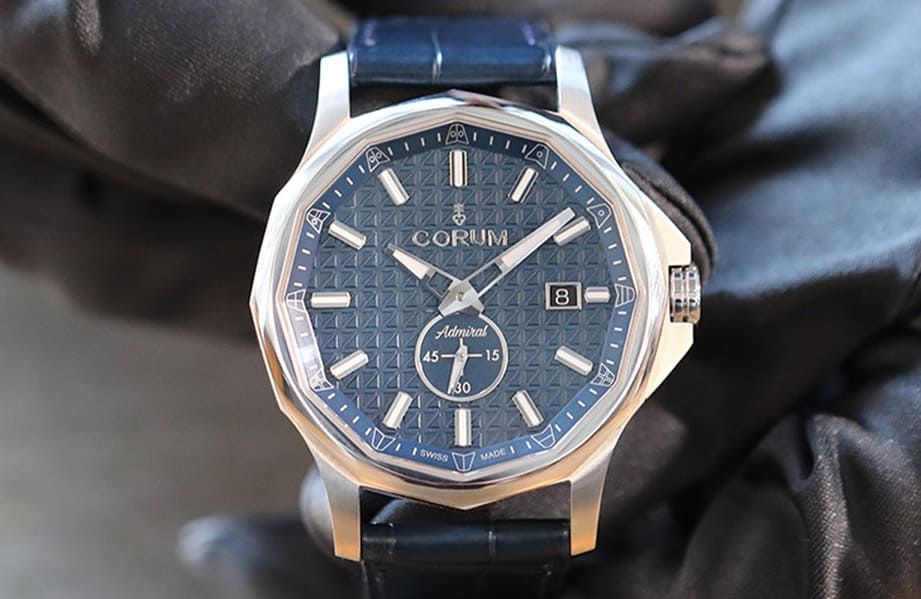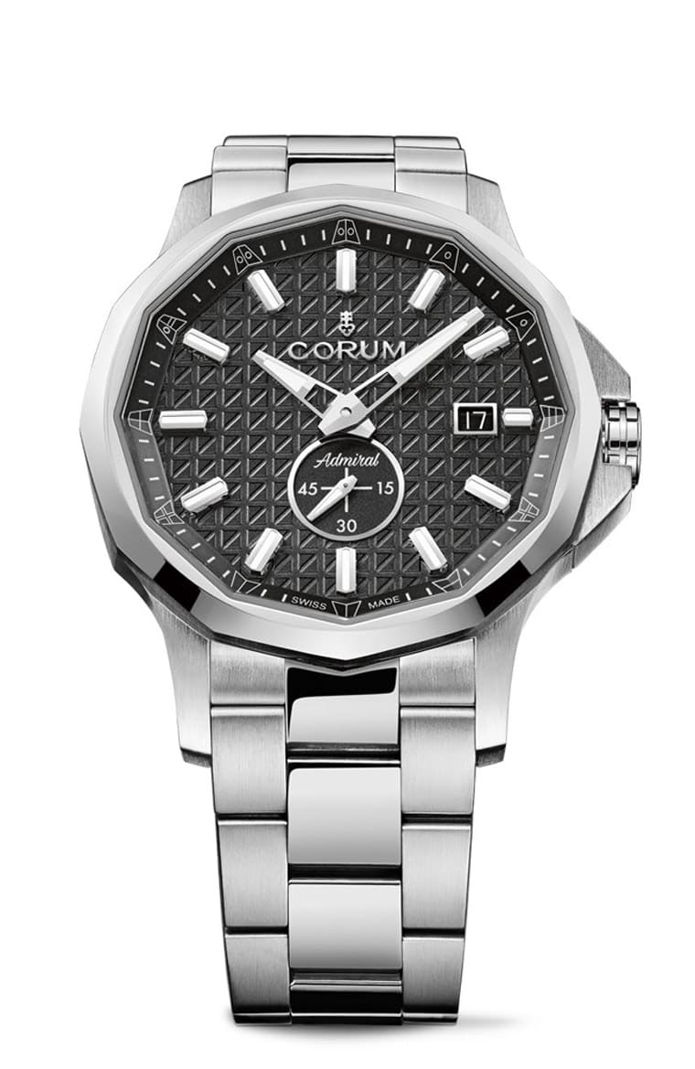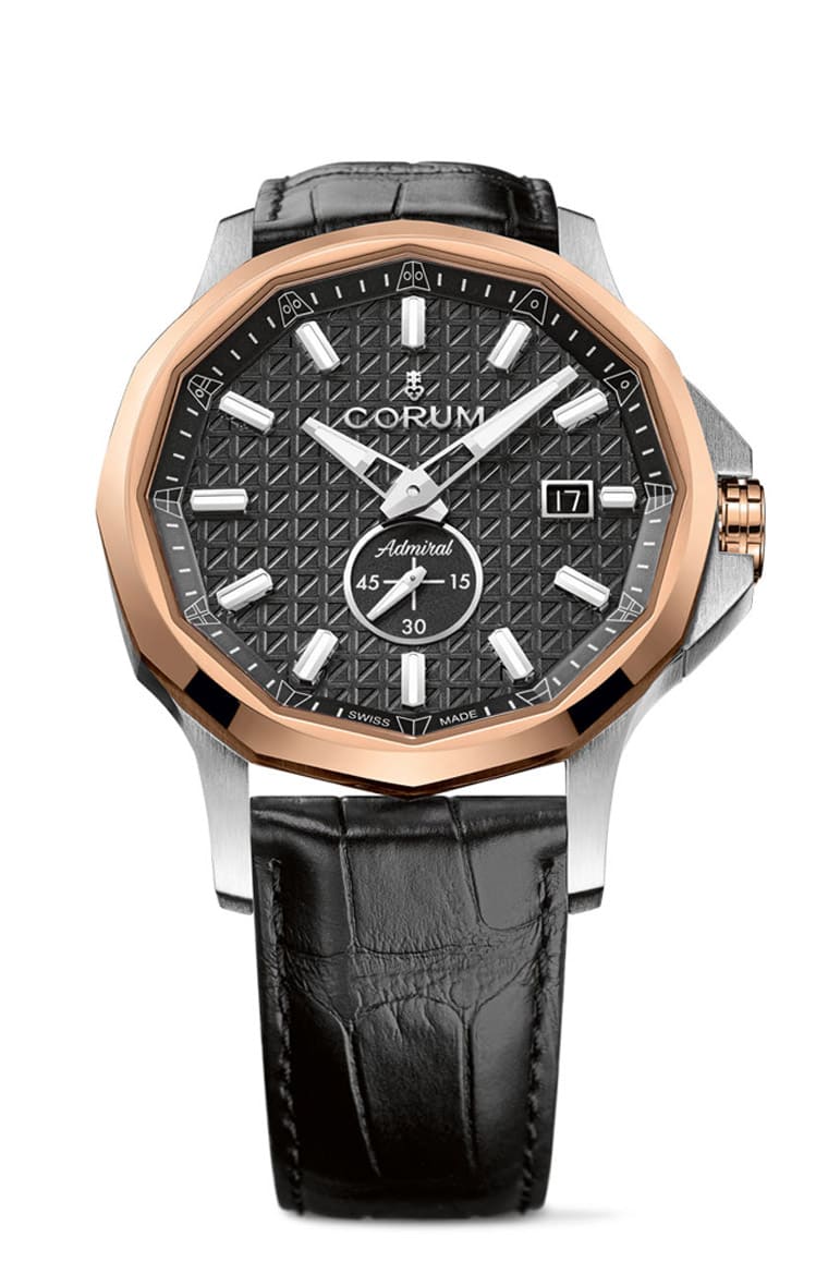 CORUM昆仑表招牌系列Admiral海军上将2022年新推出表径42mm的小三针自动表,持续以别具辨识度的造型,藉由不同材质、配色和表带等,诠释手表来自帆船运动的设计渊源。