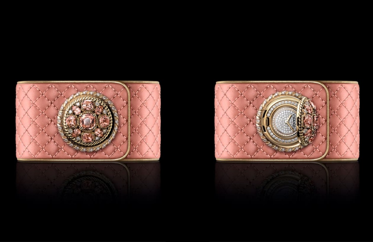 香奈儿创作珠宝饰品的历史比腕表更悠久,早在1932年品牌便发表了首个也是唯一的顶级珠宝系列,而且香奈儿打造的珠宝作品有个特徵在于其不像多数珠宝商往往一味强调宝石的大小与珍稀程度——这些固然是成就一件好作品的基础,但是相较于宝石本身因素,香奈儿女士认为出色的创意更能够决定作品引人入胜的魅力。时至今日,这种独树一帜的理念成就了香奈儿腕表创意工作室各项令人赞嘆的创作,例如Mademoiselle Privé系列便是用各种高级工艺的概念来烘托贵金属、宝石与腕表的珍贵价值;第一眼见到系列中的作品不见得能马上认出其具有时计的身份,因为Mademoiselle Privé系列外型与高级珠宝如出一辙,且如同品牌一贯的风格,珠宝素材并不会凌驾于作品的设计概念,凭藉丰富创意设计与扎实工艺水准,造就出一件件让人惊嘆的Mademoiselle Privé腕表作品。