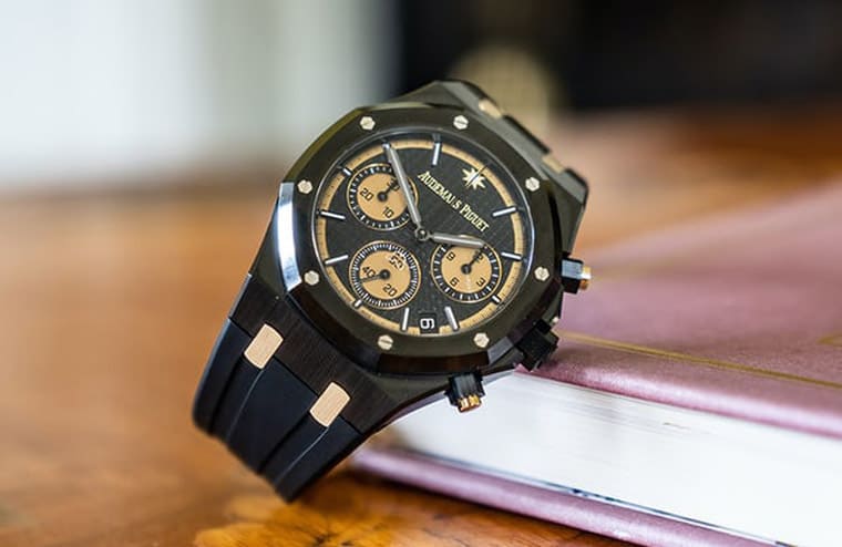 然后就在某天,他拿到了一只他梦寐以求的AP特制版皇家橡树计时码表。一直以来,红髮艾德对于陶瓷壳的皇家橡树就很有好感,他表示自己最爱的手表中就有一款皇家橡树,而且他拥有的AP手表也满少,其中他对于陶瓷壳的AP手表相当有好感,他觉得陶瓷表的质感很不一样,戴起来也很舒适,尤其如果具备复杂功能会让手表看起来更有高规格的工艺感。不过光拥有陶瓷壳的AP手表还不够,他想要的表是可以跟市售款不一样的、充满红髮艾德个性的表。