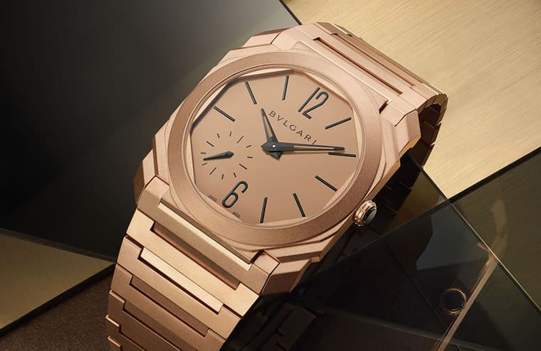 ▲Octo Finissimo Automatic玫瑰金款整体厚度仅5.15mm,表壳採用磨砂处理具备绝佳质感。