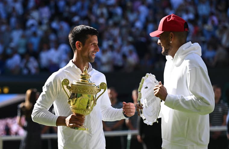 乔科维奇在2022年初因为拒打疫苗接连错失澳网等赛事的参赛权,不过从5月他挺过疫苗风波后已陆续参加罗马大师赛、法网等比赛,而虽然在法网八强赛时遇到宿敌Rafa Nadal惜败,可是乔科维奇于接着登场的温网赛事中持续保持好状态,一路挺进到冠军赛;两人在冠军赛前也互相在社群软体上隔空喊话,由于Kyrgios在Djokovic 2022年初的拒打疫苗事件中是少数站出来捍卫他个人自由的支持者,两人的关系因此由冰点升温,也在温网冠军赛前讲好谁得冠军就请对方吃饭,来了个先礼后兵的君子约定。