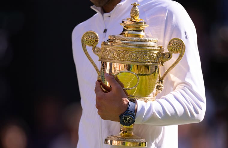 ▲Big Bang Meca-10蓝陶瓷手表接连陪着乔科维奇夺下罗马大师赛与温网冠军,成了他2022年的幸运表。Source:Facebook @wimbledon