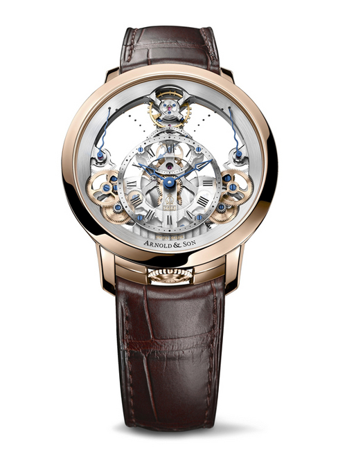 受两百多年前约翰.亚诺和罗格.亚诺发明的整时器以及英国鏤空鐘的启发,新款的亚诺表设置专属AS1615号机芯,是在亚诺表位于瑞士拉绍德封的表厂内设计和研发的。