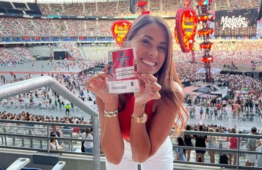 ▲Antonella Roccuzzo有次去听红髮艾德演唱会,开心拍照纪念之餘,手上戴的金鹰7118/1R白面款也看得很清楚。Source:ole
