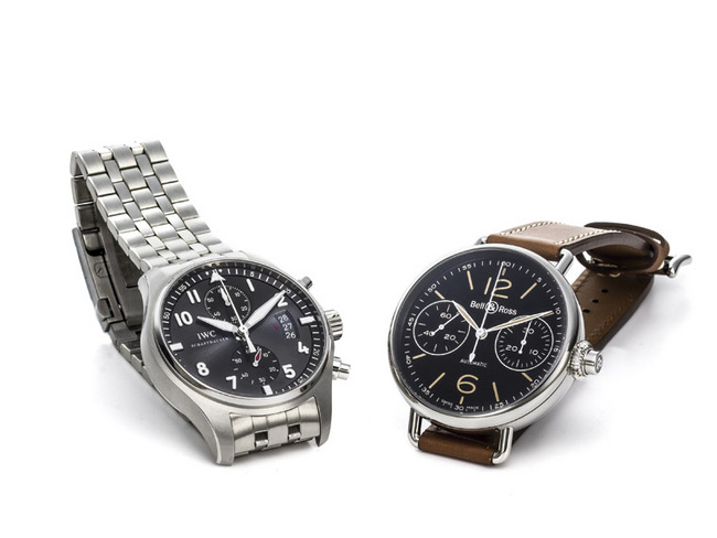 ▲ 左为IWC Spitfire Chronograph,右为BELL & ROSS Vintage WW1 Chronographe Monopoussoir