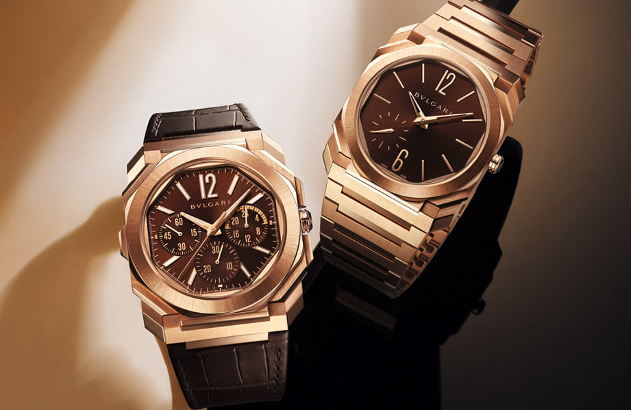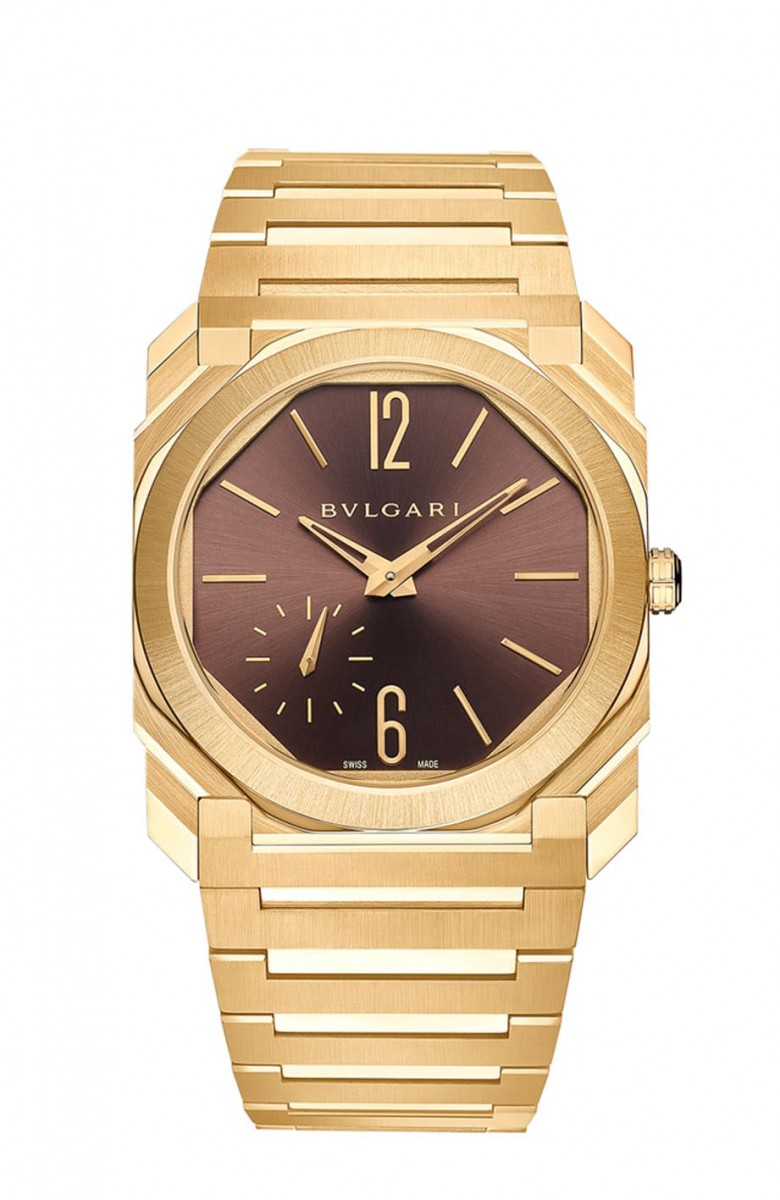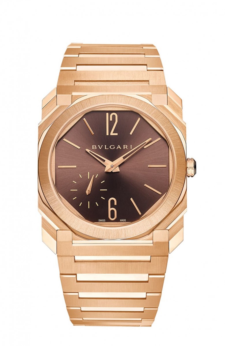 宝格丽品牌还将「黄金法则」套用至全新的Octo Finissimo Chronograph GMT Automatic两地时区计时自动表与Octo Finissimo Automatic自动表,两款表皆採用玫瑰金表壳搭配棕色漆艺面盘;其中小三针自动表更推出美国限定的限量黄K金版本,仅50只的发行数量让收藏家心动不已。