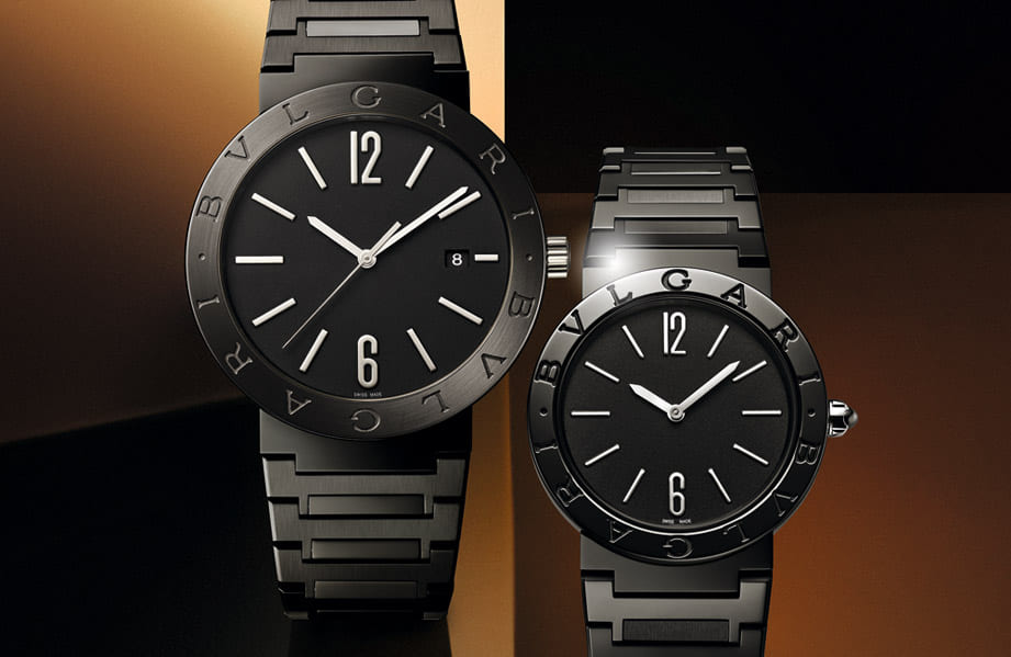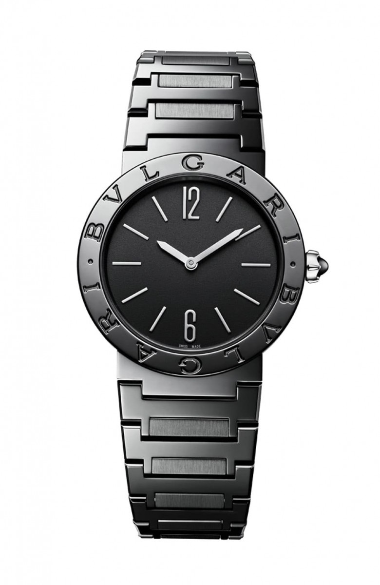 BVLGARI BVLGARI与Serpenti系列同样走黑色风格,宝格丽分别推出33mm石英款与41mm自动机芯款,两款表皆採用DLC不锈钢表壳搭配黑色漆艺面盘,用单色调呈现系列摩登简练的优雅造型,比起Serpenti系列还会结合贵金属的设计,BVLGARI BVLGARI系列展现更多属于黑色单色调的层次变化感。