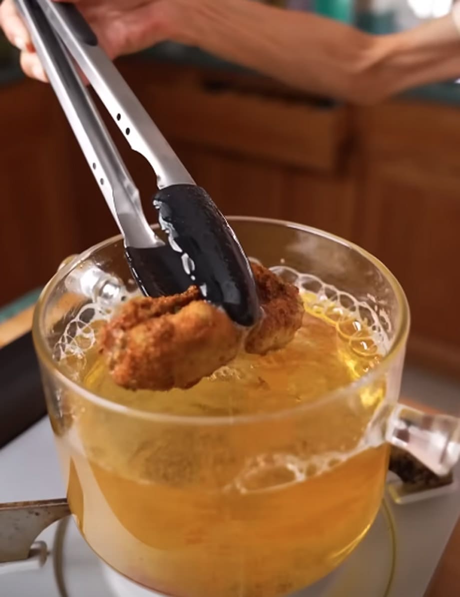 Lynja听了之后只是淡定地回说:”I don’t Know, I think we should”,接着就强摘Benny Blanco手上的劳力士,接下来的步骤简直就像把手表当成了一根鸡腿般,Lynja先把手表沾满蛋液、裹粉,接着就到了高潮——把手表放进滚烫的油锅裡,直到它变得金黄酥脆再夹起来,炸好后的黄金Datejust乍看还真的有点像一只鸡腿,Lynja还敲了敲手表看看它有没有炸得够脆。