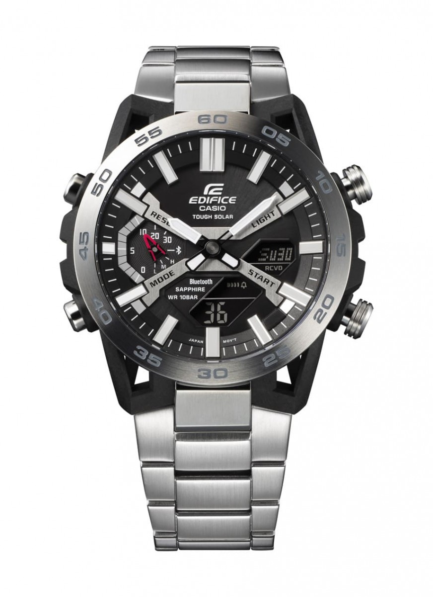 ECB-2000家族搭载的机芯蕴含Tough Solar太阳能充电系统,佩戴者只需让手表照到少量光线就能帮手表充电,当置身于黑暗环境中则有双重LED超亮照明功能协助辨识时间,几乎石英表可以做到的事,这款新作都能通包了。