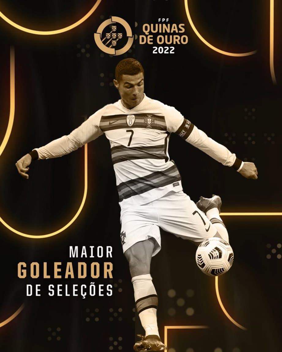 ▲葡萄牙足球巨星日前获颁Gala Quinas de Ouro的国家队最佳射手奖。Source:intelregion