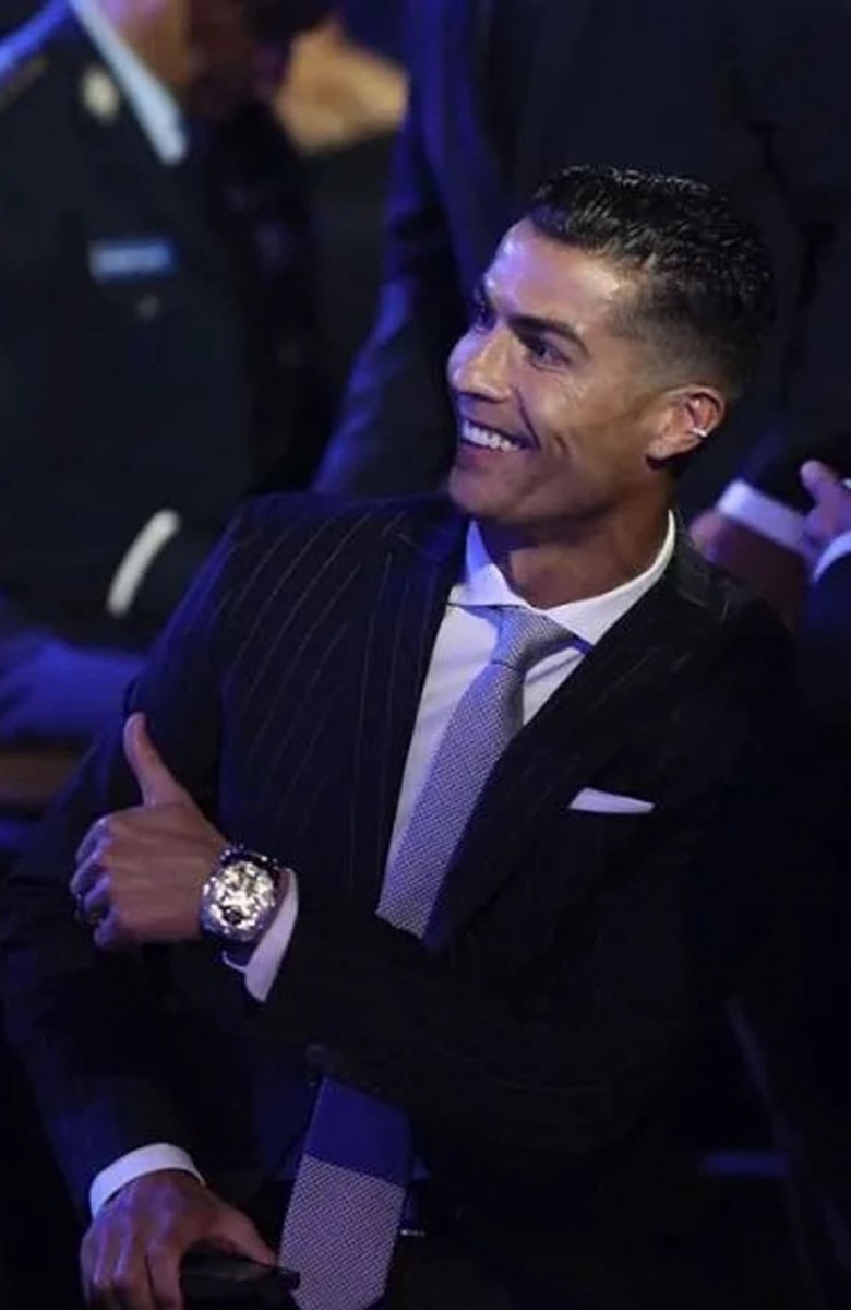 ▲C罗在颁奖典礼现场手上佩戴一款满天星钻表,搭配他一身优雅西装,看起来相当高贵。Source:intelregion