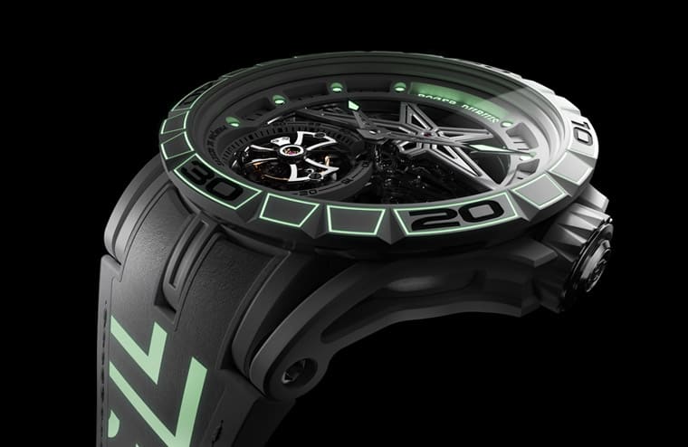 罗杰杜彼精心于表圈、时标和品牌标志部分覆以SuperLuminovaTM夜光涂料,就连表带上独特的倍耐力150周年标志也使用能在黑暗中发光的SuperbiwinovaTM技术,使得手表在黑暗环境中依旧可以清楚显示时间,同时也让人一目了然其联名纪念表身份。