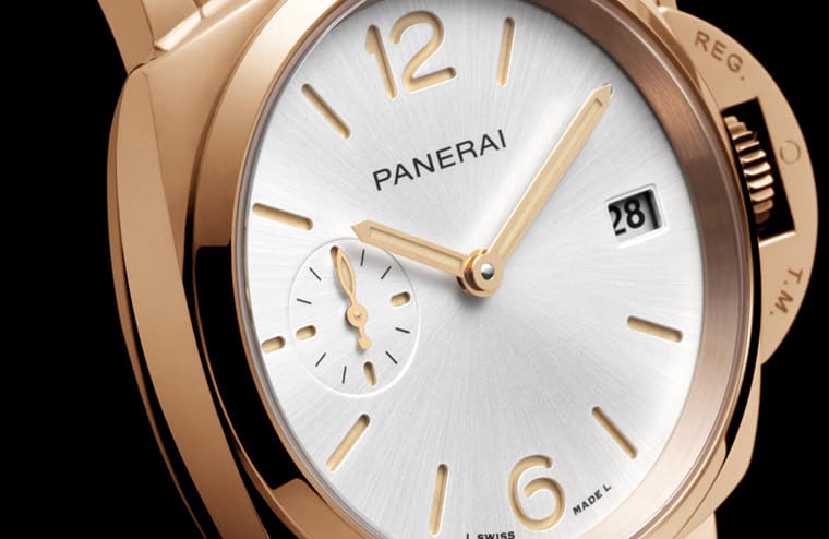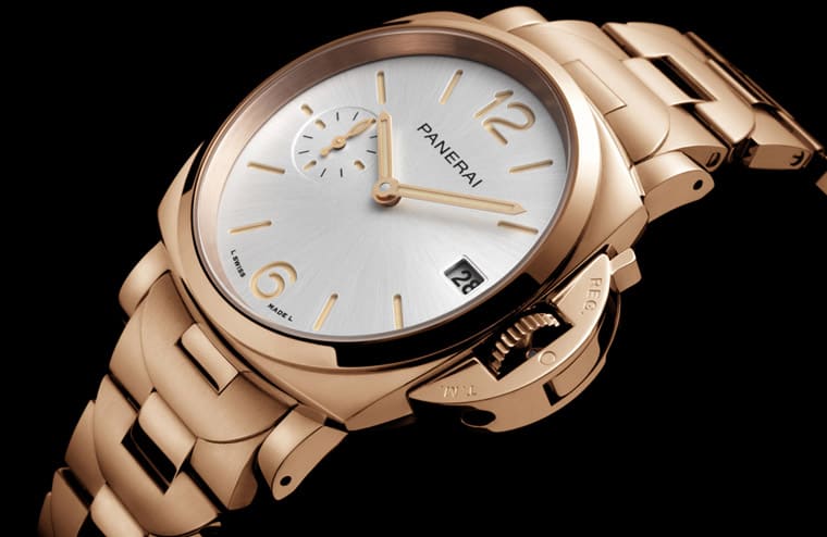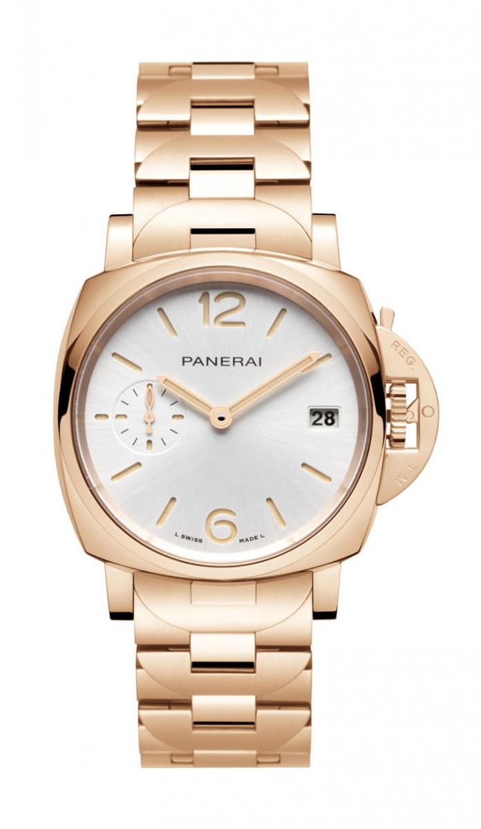 ▲沛纳海Luminor Due TuttoOro PAM01326为品牌第一款启用Goldtech™红金链带的作品。