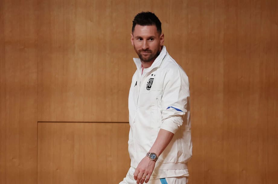 ▲本届卡达世足赛的赛前记者会上,梅西身穿一身国家队运动服亮相,手上戴着令人惊艳的PP话题运动表。Source:Sportskeeda