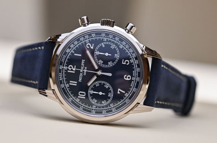 5172G-001整体厚度仅11.45mm,是相对纤薄的计时码表,面盘的蓝色是蓝色清漆,并镶上立体白金阿拉伯数字时标,看起来精致、对比强烈且优雅,而且时标上还涂上夜光物料强化手表的夜视效果。5172G-001的计时按把造型走复古设计,据说品牌是以1950年代的经典计时码表型号1463为灵感,进而设计出5172G-001的按把,怀旧氛围与手表整体的风格很搭调。5172G-010过去两年价格一路扶摇直上,目前它的价格平均约在73,000美金之上,按照它愈来愈炙手可热的程度看来,2023年如果它的市场价值再往上涨,似乎也不用太意外。