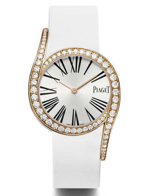 明艳动人、生机盎然、性感嫵媚,这叁个形容词完美表达伯爵Limelight Gala系列手表的特质。它将时间从世人习以为常的直线设计中释放出来,以一个完全女性化的曲线弧度取代。两枚优雅延伸的表耳烘托出圆形表壳,性感的弧度更因由小渐大的单排圆形美钻而更显突出。简洁、低调的表盘散发极致的时尚女性魅力,其上的黑色罗马数字时标恰如其分地呼应着精致的绢质表带。