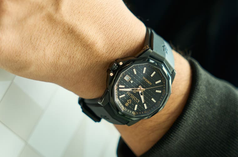 CORUM昆仑表的招牌作Admiral海军上将系列2023年新增一款表径38mm的新作Black Unisex自动表,手表的尺寸打破了性别界限,无论男、女佩戴都适合,而且手表本身採用全黑色调搭配金色细节,兼具个性与时尚感,出众外型对于男、女性而言也都颇富吸引力。