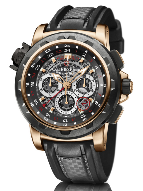 柏拉维TravelTec叁地时间计时码表的设计以简易操作为本,乃宝齐莱制表精英的心血结晶:例如表主无论向东或向西穿梭不同时区,都可以预先设定10时位置的多功能按钮的叁角标记配合,而每按这按钮一次,24小时制式的时区显示环便会向前或向后推进一小时,配合红色指针清晰地指示出其他时区的时间。