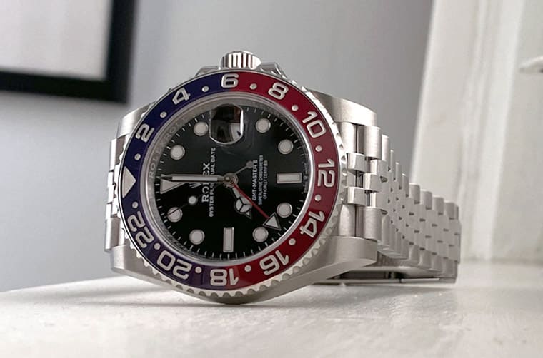 当劳力士在2018-2019年连续两年发表搭配五珠带的126710BLRO和126710BLNR时,我们一度以为品牌接下来会用五珠带作为区隔GMT-Master II不锈钢与金钢/贵金属款式的元素,没想到劳力士却又在2021年带回了三板带的百事圈与蓝黑圈,并且与五珠带款式并行,甚至2022年品牌别开生面发表左冠设计的绿黑圈126720VTNR时,更一口气出齐三板带与五珠带版本,这下使得情况出现了一点变化。