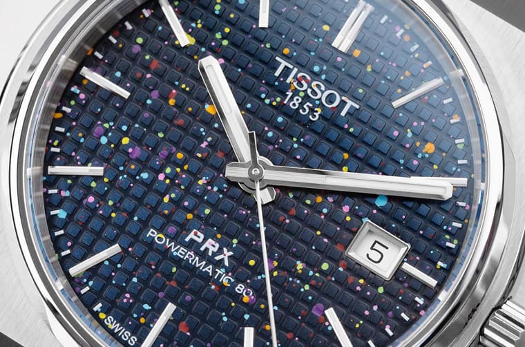 这款PRX Powermatic 80 ”Interstellar Concept”外观与天梭原厂制作的蓝色面盘款式相去不远,不过IFL Watches特别在手表的格纹面盘添上五顏六色的彩色圆点,犹如在夜空中看到宇宙中形形色色的星体,因为这些彩色圆点都是以手工彩绘方式制作,所以基本上找不到两枚完全一样的面盘,这就像是宇宙中每个星体都是独一无二的存在般。IFL Watches强调他们在制作过程中乃是使用醇酸树脂涂料,确保面盘上的彩色圆点具有优异的耐候性、防紫外线和耐光性等,长久佩戴也不会容易出现褪色变质等问题。