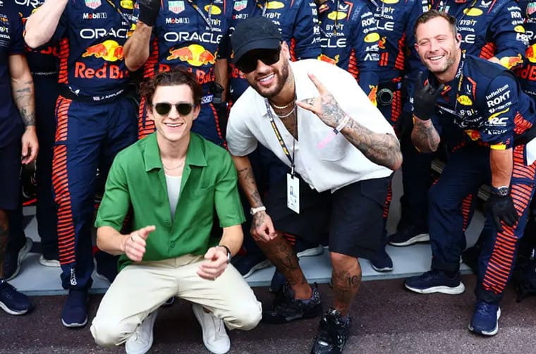 ▲汤姆霍兰德日前现身F1摩纳哥大奖赛,巧遇巴西足球明星内马尔,两人还兴奋和红牛车队人员合照。Source:TheSportsGen