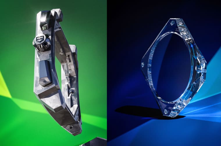 ▲泰格豪雅为了第10届的Only Watch慈善拍卖会打造Monaco Split-Seconds Chronograph Only Watch,手表採用Texturised Titanium钛金属与蓝宝石水晶制作复杂的表壳结构。